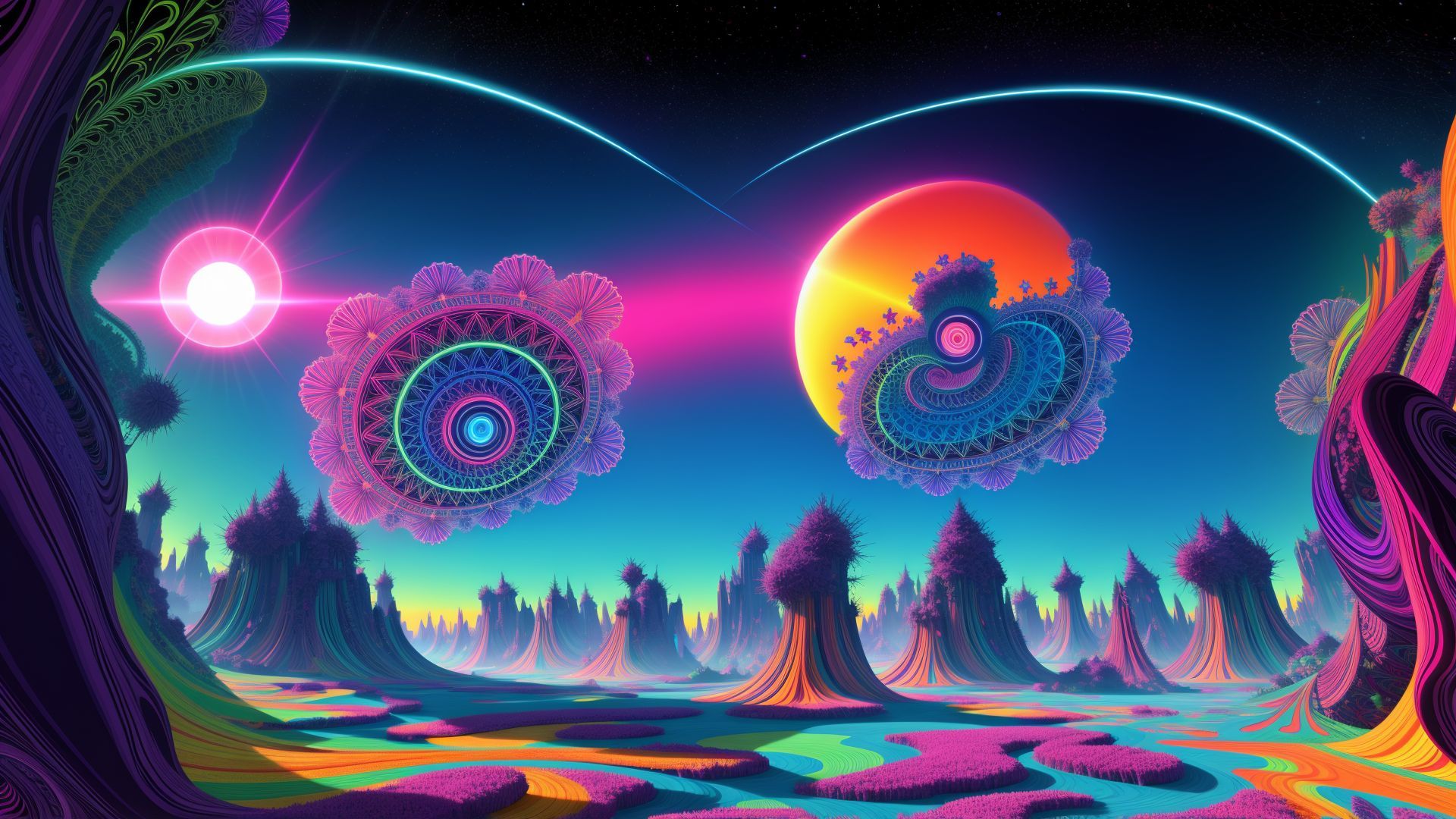 Sunrise futuristic fractal trippy psychedelic sharp colorful best quality vibrant colors